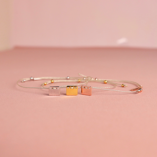 手繩收尾的繩索,可以透過定位珠左右移動收藏起來,緊貼手腕使佩戴體驗更加舒適靈活,亦方便配搭其他手鏈。